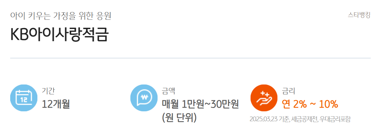 국민은행에는 'KB국민은행 아이사랑 적금'이 마련되어 있습니다.