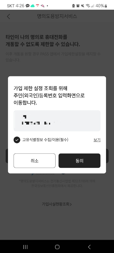 명의도용방지 설정을 해두면, 나의 유심으로 다른 핸드폰 개통이 불가합니다!!!!