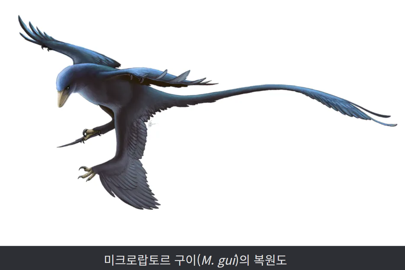 - 미크로랍토르(Microraptor): 날개를 포함한 4지에 깃털이 존재해 ‘글라이더’처럼 활강했을 것으로 추정.