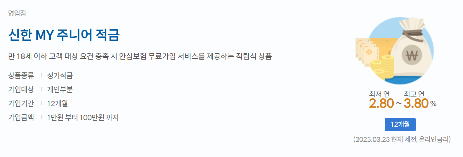 신한은행은 '신한 MY 주니어 적금'이 마련되어 있습니다.